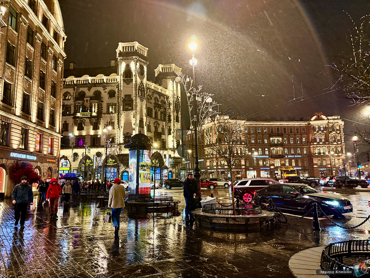 Представьте: хмурый ноябрьский день, воздух пропитан влагой, а улицы Санкт‑Петербурга превращаются в декорации для атмосферного фильма. Недавно я прогулялся по городу в дождь – и это оказалось настоящим открытием. Что может быть лучше, чем неспешная прогулка под монотонный стук капель? Да, вы получаете «бесплатный уличный душ», но взамен – бесценные кадры и ощущения. Угрюмое небо, зеркальные лужи, приглушенные цвета и размытые огни создают ту самую кинематографичную эстетику, которой так не хватает солнечным дням. Все снимки сделаны в конце ноября, но уверяю: в начале декабря палитра остается той же (и 2025 год – не исключение). Пасмурные дни с капризной смесью дождя и снега продолжают писать свою меланхоличную историю. Так что, если кто‑то уверяет вас, что ноябрь – самое неудачное время для визита в Петербург, не спешите верить. Просто подберите одежду по погоде, «вооружитесь» зонтом, который станет вам самым верным «боевым товарищем», откройте сердце и отправляйтесь навстречу п