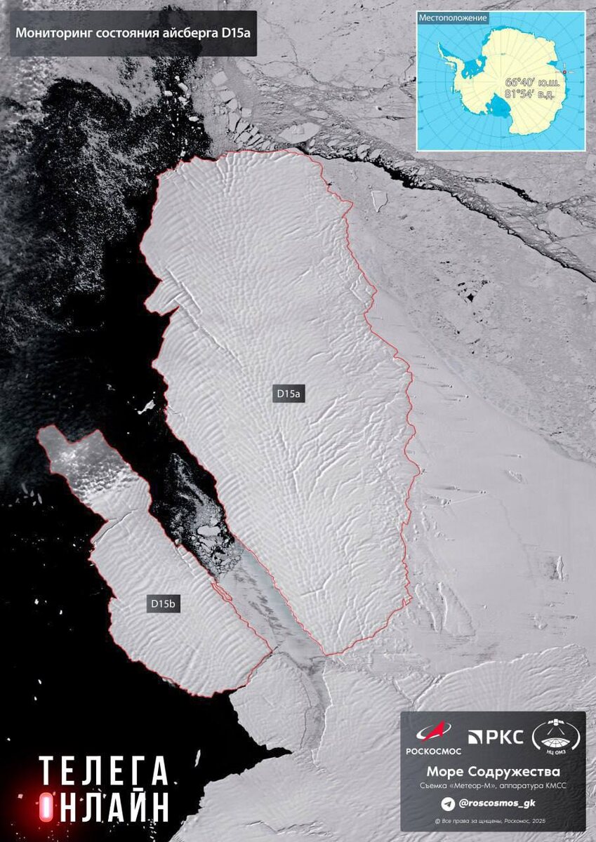 «Роскосмос» показал фото самого большого на данный момент в мире айсберга D15а