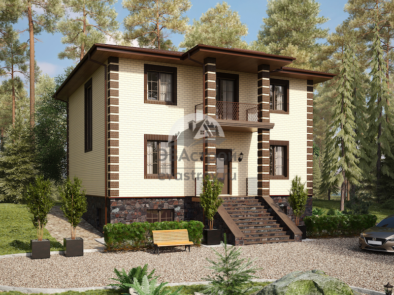 Проект двухэтажного дома с цоколем из газобетона в европейском стиле - П20