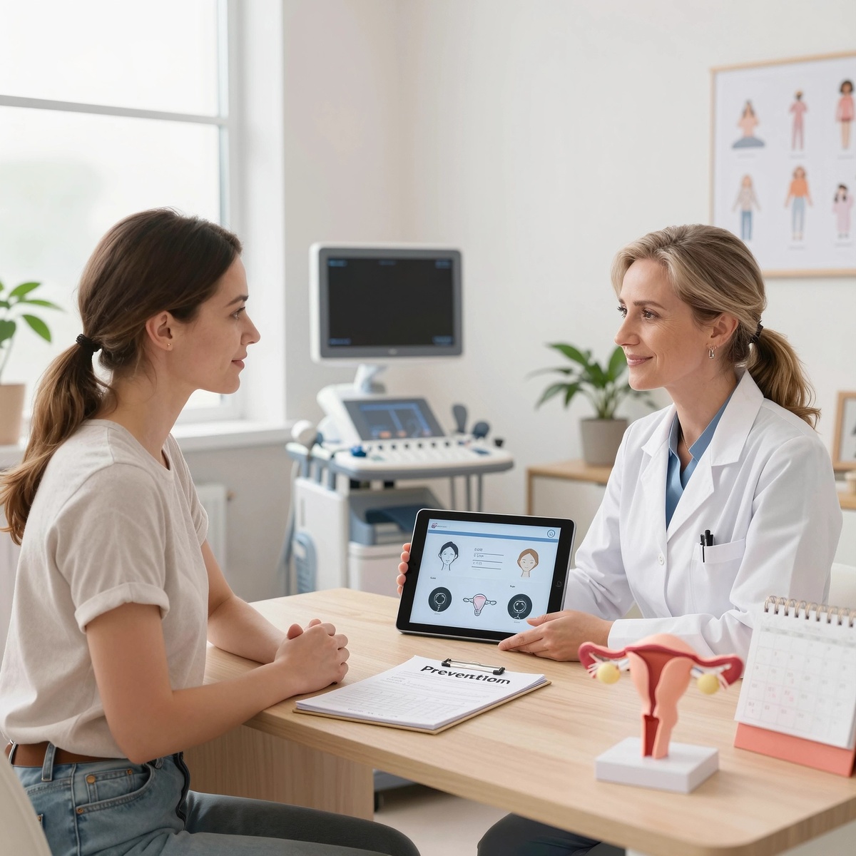 Вакцинация против ВПЧ, регулярный скрининг (цитология/ВПЧ‑тест), отказ от курения, контроль массы тела, лечение гиперплазии эндометрия и предраковых состояний по назначению врача. При межменструальных кровянистых выделениях после 40 лет — не откладывайте визит: осмотр, УЗИ, по показаниям — биопсия. «Предупреждён — значит вооружён»: своевременная диагностика реже требует сложного лечения.