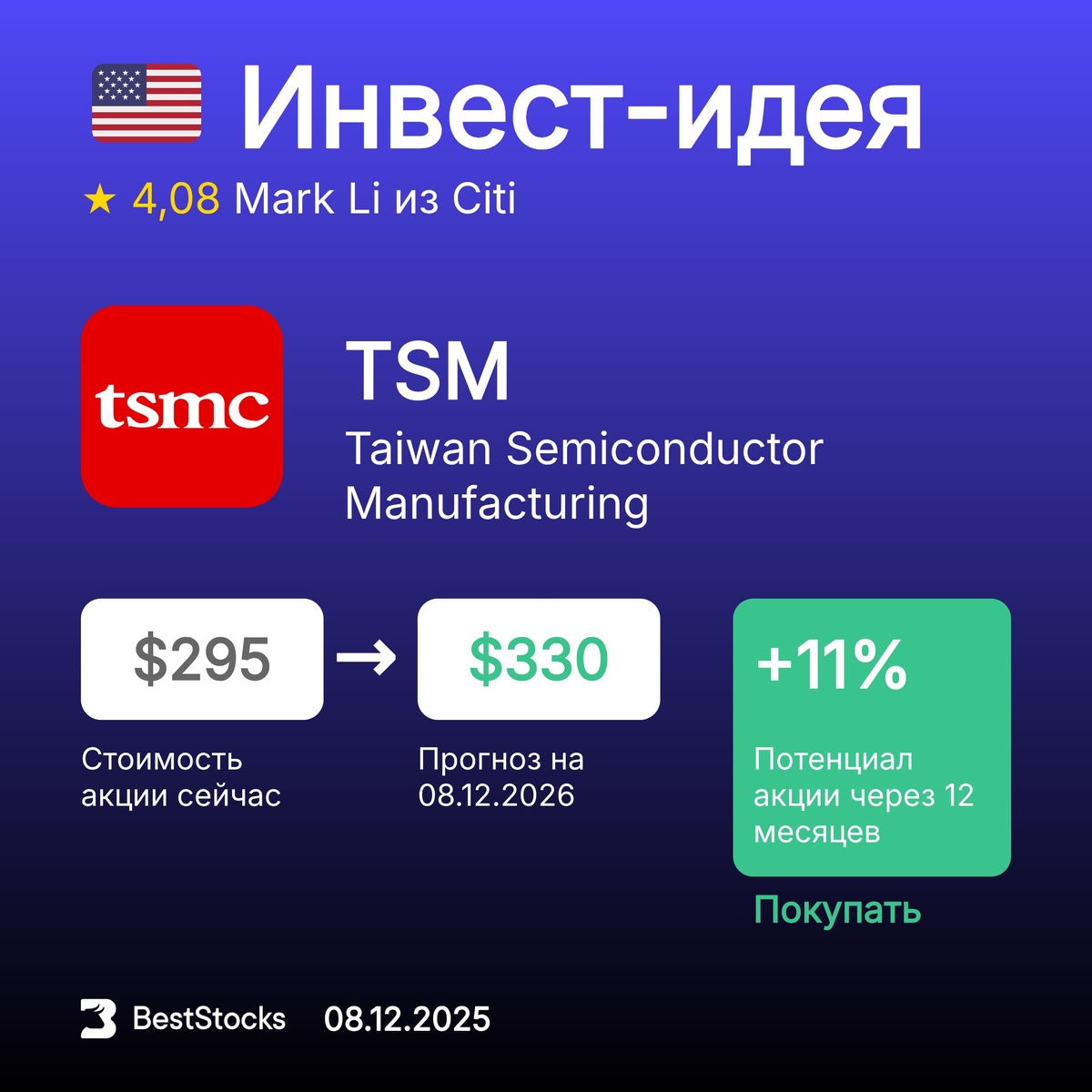 πΊπΈ ΠΠ½Π²Π΅ΡΡ-ΠΈΠ΄Π΅Ρ ΠΏΠΎ Π°ΠΊΡΠΈΠΈ Taiwan Semiconductor Manufacturing Π’ΠΈΠΊΠ΅Ρ: TSM ΠΡΠΎΠ³Π½ΠΎΠ·Π½Π°Ρ ΡΠ΅Π½Π°: $330 (+11%) Π Π΅ΠΊΠΎΠΌΠ΅Π½Π΄Π°ΡΠΈΡ: ΠΠΎΠΊΡΠΏΠ°ΡΡ InvestRank Π°ΠΊΡΠΈΠΈ: 10 ΠΈΠ· 10 ΠΡΠΎΠ³Π½ΠΎΠ· ΡΠ΄Π΅Π»Π°Π½: 08.12.2025 ΠΡΠΎΠ³Π½ΠΎΠ· Π΄ΠΎ: 08.12.2026 ΠΠ½Π²Π΅ΡΡ-ΠΊΠΎΠΌΠΏΠ°Π½ΠΈΡ: Citi ΠΠ½Π°Π»ΠΈΡΠΈΠΊ: Mark Li ΠΡΡ ΡΠ΅ΠΊΠΎΠΌΠ΅Π½Π΄Π°ΡΠΈΠΈ Π½Π° ΡΠ΅Π³ΠΎΠ΄Π½Ρ β β’β’β’β’β’ π’ ΠΠ΅ΡΠΊΠΎΠ»ΡΠΊΠΎ ΡΠ°Π· Π² Π½Π΅Π΄Π΅Π»Ρ ΠΏΠΎΠ»Π½ΠΎΡΠ΅Π½Π½ΡΠ΅ Π°Π½Π°Π»ΠΈΡΠΈΡΠ΅ΡΠΊΠΈΠ΅ ΠΎΠ±Π·ΠΎΡΡ ΡΡΠ½ΠΊΠ° Π‘Π¨Π. ΠΠ°Π½ΠΈΠΌΠ°ΡΠ΅Π»ΡΠ½ΠΎ ΠΈ ΠΏΡΠΎΡΡΠΎ Π΄Π»Ρ ΠΏΠΎΠ½ΠΈΠΌΠ°Π½ΠΈΡ Π΄Π°ΠΆΠ΅ Π΄Π»Ρ Π½ΠΎΠ²ΠΈΡΠΊΠΎΠ².