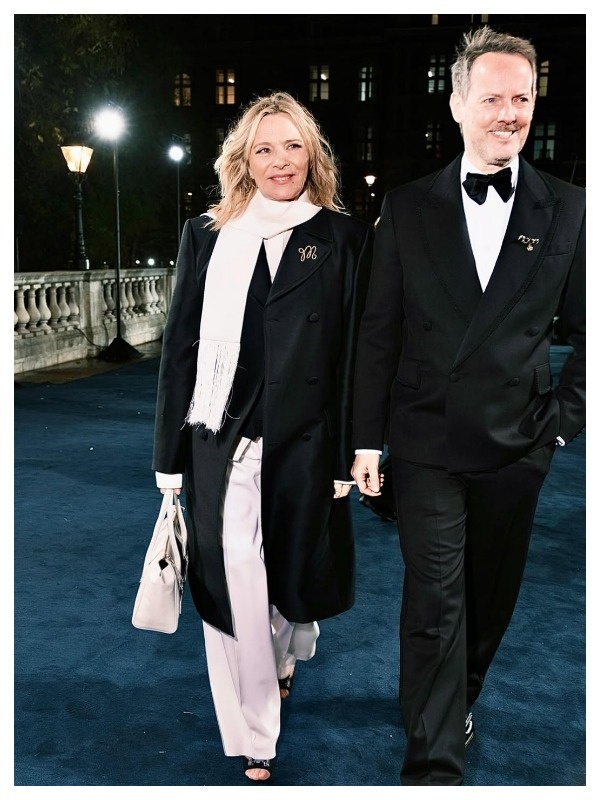 Главным героем свадебного дня стал даже не таинственный жених, а образ самой Ким — утонченный, женственный и абсолютно вне времени. Вместо традиционного платья Кэтролл выбрала кремовый костюм-двойку от Dior. Приталенный жакет в форме песочных часов, изящно подчеркивающий талию, выглядел элегантно, но при этом торжественно. К юбке-миди из легкой сетчатой ткани в мелкий горошек добавлялся тонкий винтажный флер — словно отсылка к лучшим модным эпохам XX века. Аксессуары лишь усилили этот эффект: кружевные перчатки добавили нотку аристократичности, а шляпа, созданная на заказ британским дизайнером Филипом Трейс