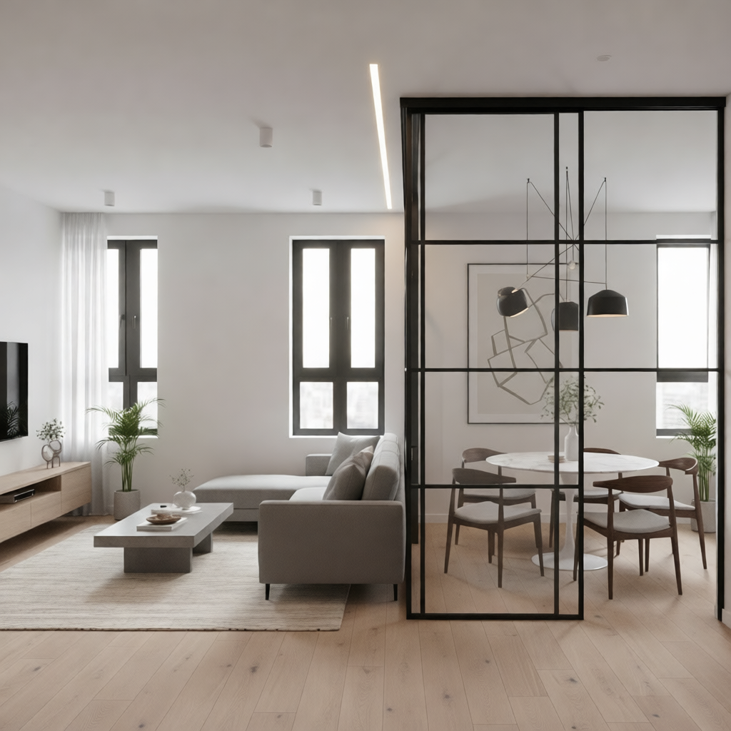Иногда, чтобы изменить пространство, не нужно сносить стены — достаточно выбрать стекло. Почему всё больше людей отказываются от привычных перегородок и делают выбор в пользу прозрачности? 1. Больше света — меньше электричества Стеклянные перегородки пропускают естественный свет, чего не скажешь о гипсокартоне или кирпичной стене. Особенно актуально для офисов с одним источником дневного света: пространство остаётся светлым даже в глубине помещения. Например: в офисе крупной компании вместо глухих перегородок, мы сделали стеклянные. Итог: сотрудники буквально задышали светом. 2. Визуальное пространство Даже в небольшой квартире стекло работает как волшебство: не делит комнату пополам, а деликатно зонирует. Визуально становится просторнее, легче, уютнее. Из практики: в небольшой квартире мы отделили кабинет и гостиную стеклянной перегородкой с распашной дверью. Клиенты говорят, что пространство не «съедается» при хорошей звукоизоляции. 3. Быстрый монтаж — минимум пыли Не нужно штука