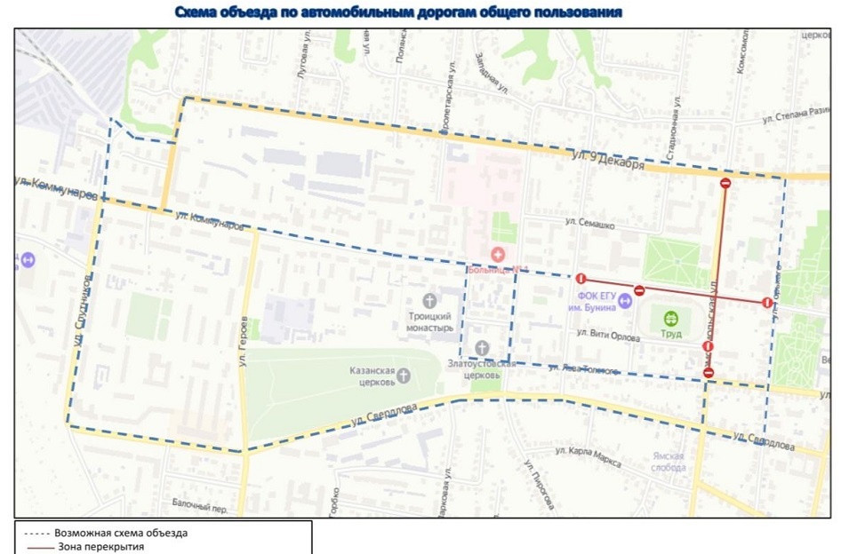 В Ельце завтра, 9 декабря, будут проводиться мероприятия в честь празднования 84-й годовщины Елецкой наступательной операции. Из-за этого временно — с 13:30 до 16:30 — в городе будет прекращено движение транспорта (кроме общественного) по улице Коммунаров (на участке от улицы М. Горького до Профинтерна) и по улице Комсомольская — на участке от улицы 9 Декабря до улицы Л. Толстого. Как сообщили в мэрии Ельца, для объезда действуют альтернативные пути. Водителям следует ознакомиться с ними на специальной схеме. Всех автолюбителей просят заранее планировать маршруты движения. Напомним, что 9 декабря 1941 года старинный Елец был освобождён от нацистских захватчиков. Город всегда был крупным железнодорожным узлом и стратегически важным объектом, поэтому советским бойцам нужно было отстоять город от фашистов.