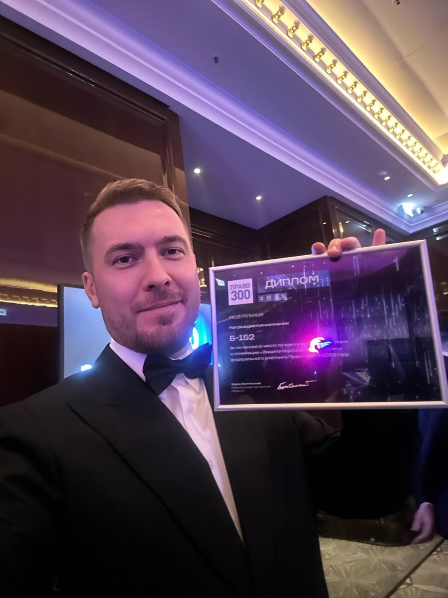 Совсем недавно на главном юридическом событии года портал Право.ру объявил лидеров рейтинга Право-300. В категории «Защита персональных данных» мы вошли в первый бэнд — тот самый золотой уровень, куда попадают только компании, которые стабильно делают работу качественно и подтверждают это реальными результатами🔥 Юридический рынок традиционно смотрит на суды, большие сделки и классический консалтинг. Проектам по соответствию 152-ФЗ там исторически сложнее пробиться. Но в этом году наши кейсы, процессы и подход официально признаны одними из лучших в стране! ⭐️ Коммерческий директор Б-152 Егор Кузнецов принял награду лично. Закрытое мероприятие в Ritz-Carlton, строгий black-tie, сотни сильнейших юристов и экспертов, и среди них мы, команда, которая когда-то решила, что приватность и ИБ тоже должны иметь свой вес в большой индустрии. И теперь он есть! Спасибо клиентам, которые доверяют нам свои системы и данные. Спасибо команде, которая ежедневно держит эту планку. Продолжаем работать так