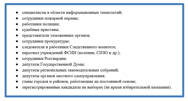 К категориям граждан, обладающих правом на отсрочку по профессиональной деятельности, относятся:
