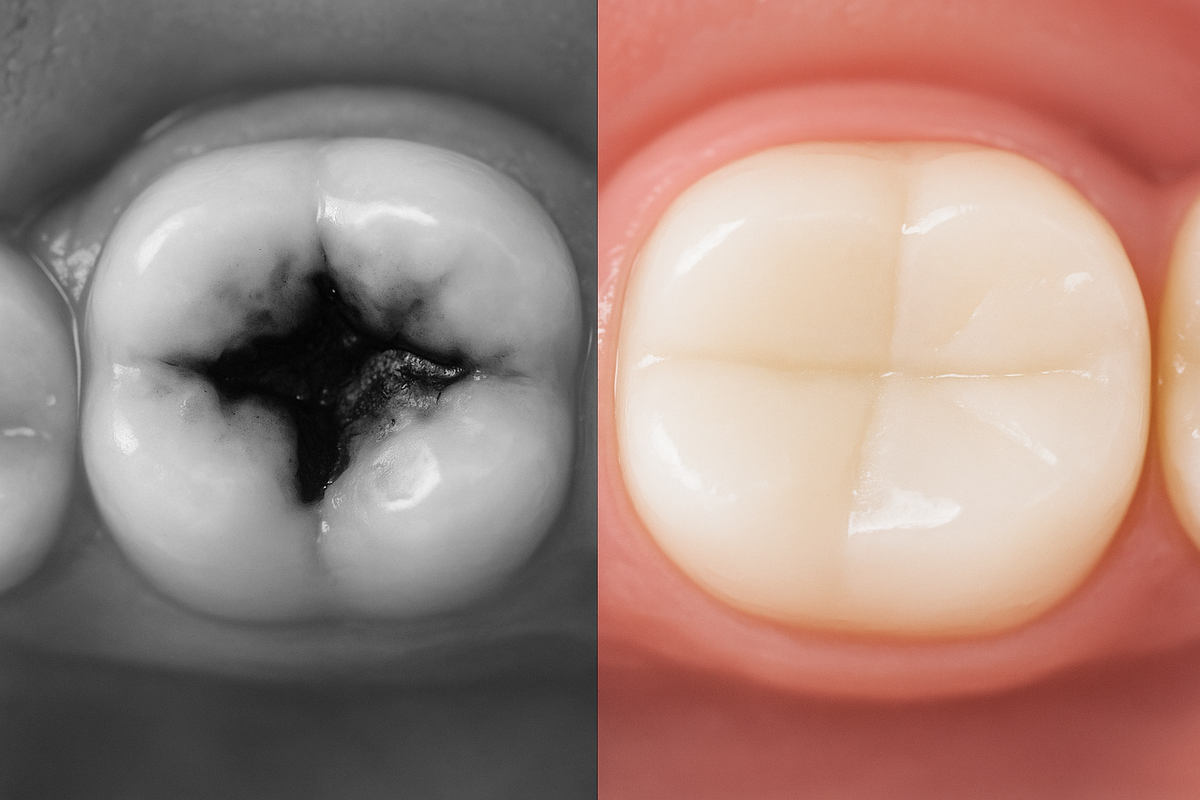 И именно поэтому взрослые так часто запускают ситуацию до серьёзных осложнений. 📌 Начальная стадия - без боли, но не без проблем На раннем этапе кариес повреждает только эмаль.