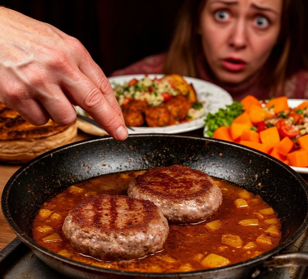 Прямо передо мной и Сергеем Людмила Петровна поставила… старую сковородку. В ней, слегка подгоревшие, лежали две котлеты из дешевого фарша. Рядом, в мисочке, темнел вчерашний тушеный кабачок, уже заветрившийся по краям. И пара ломтей черствого хлеба.