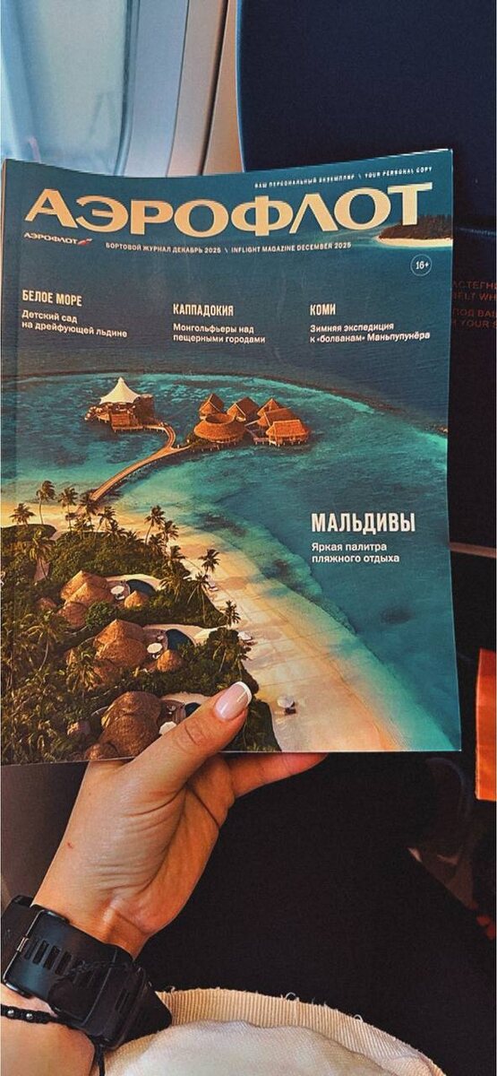 ✈️🌊🪟В журнале Аэрофлот вышла новость о нашем запуске плавучего отеля Ritrella Даже если вы еще пока не летите на Мальдивы, выкладывайте фото заметки в Instagram отмечайте аккаунт яхты @ritrella , чтобы оказаться на страничке яхты и сделать шаг ближе к Мальдивам 🛥️🤍 А это фото к нам летит прямо из Мексики😍