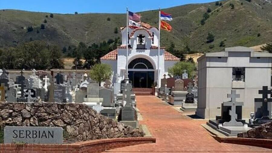 Вообще в Калифорнии сербская диаспора хоронит своих членов на различных кладбищах штата, включающих как общественные, так и конфессиональные территории. В том числе это «Сербская обитель» в Лос-Анджелесе. Там упокоены, в частности, последний король Черногории Михайло Петрович-Нeгош, основатель «Сербской обители» Иван Николаевич-Цвиетич, стюардесса Весна Вулович — единственная, кто выжил при падении югославского самолёта над Швейцарией в 1972 году, и попавшая по этой причине в Книгу рекордов Гиннеса. Есть сербские захоронения на кладбище «Голливуд-Форевэ», где среди прочих лежат звёзды немого кино, такие как Рудольф Валентино…