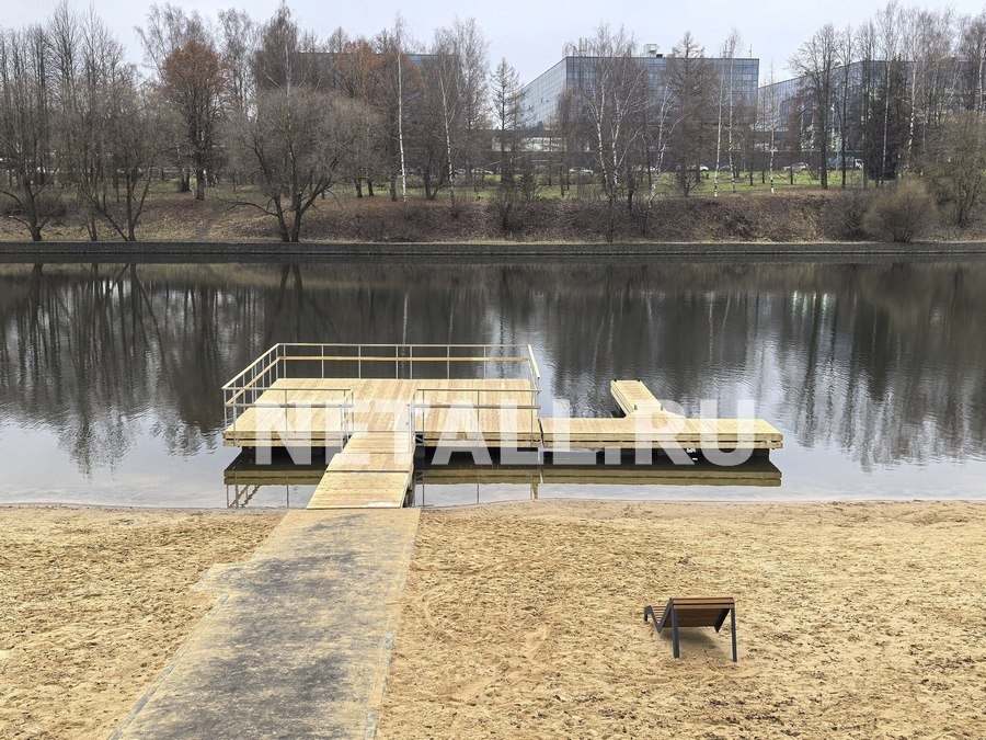 На Большом городском пруду установили две понтонных площадки. Одна из них, расположенная напротив вышки спасателей, имеет дополнительную секцию с приспособлениями для швартовки плавсредств. Другой понтон расположен ближе к Озерной аллее. При этом его смонтировали не на дорожке, разделяющей песчаную и травяную части пляжа, а внутри песчаной зоны, и пока он не имеет удобного захода. Напомним, ранее подобную конструкцию с добавлением купели смонтировали на Школьном озере. А вот от установки такого плавучего комплекса на Черном озере проектировщики предстоящего благоустройства в итоге отказались. Фото: netall.ru подписаться / обсудить в чате