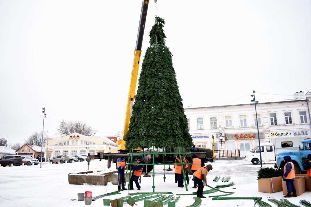 В центре Кинешмы устанавливают главную новогоднюю елку.