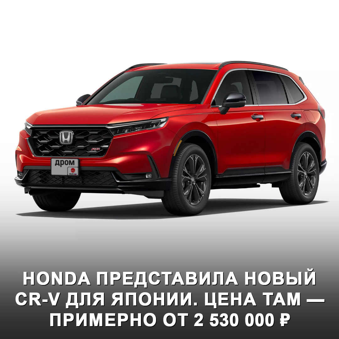 Автомобиль там будет предлагаться в двух версиях: базовой и Black Edition с чёрными акцентами на кузове, колёсными дисками 19” и панорамой. Среди оснащения: цифровая приборка 10,2”, мультимедиа 9”, аудиосистема Bose с 12 динамиками, беспроводная зарядка, электропривод пятой двери, подогревы и вентиляция сидений, проекция и автоторможение. Техника: → Гибридная силовая установка e:HEV с двигателем 2,0 л, двумя электромоторами и вариатором. → Отдача — 184 л.с. → Привод — передний или полный. → Расход в смешанном цикле — 6,2 л. Цена на кроссовер в Японии стартует примерно от 2 530 000 ₽. Также там доступен водородомобиль CR-V примерно за 4 000 000 ₽. Интересно, что новый CR-V для США показали ещё летом 2022 года, для Европы — весной 2023 года. Как думаете, почему в Японию его привезли только сейчас? 🤔 #дромновость #япония #honda #crv #новоепоколение