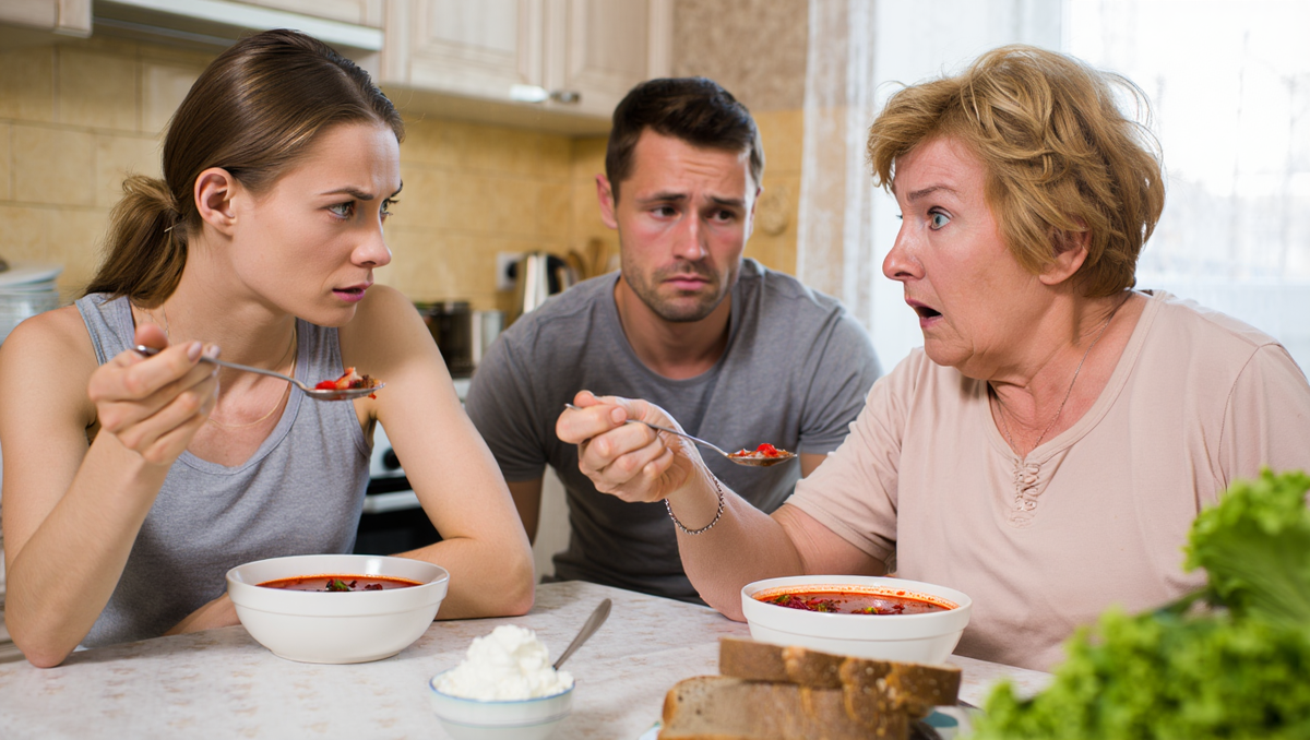 Повисла тишина. Саша поперхнулся борщом. Свекровь побледнела.
