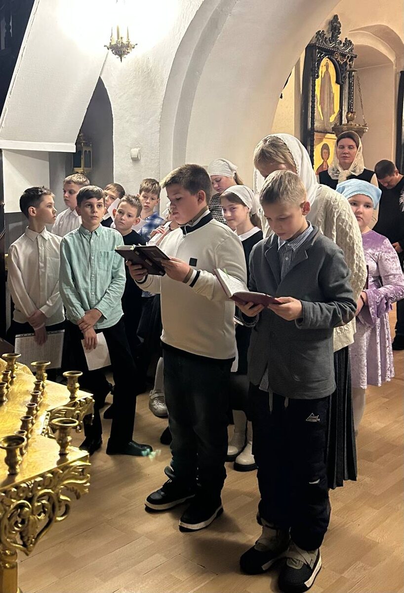 📖 15 ноября, в канун Недели 23-й по Пятидесятнице, в храме Успения Пресвятой Богородицы в Александрове состоялось «детское богослужение». Воспитанники воскресной школы приняли участие в богослужебном чтении под руководством педагога – Екатерины Геннадьевны Контауровой. Перед тем, как нам с ребятами снова выйти на службу, на уроке мы традиционно разбирали отрывок из Евангелия, положенный для чтения на Всенощном бдении, и тексты к нему, — говорит Екатерина Геннадьевна. — И вот на что мы обратили внимание. Воскресное Евангелие повествовало о том, как ученики пошли в Галилею, на гору, как повелел им Господь до Своих страданий, чтобы встретить Его Воскресшего. Ексапостиларий начинается так: «Со ученики взыдем (взойдем) на гору Галилейскую, верою Христа видети …» То есть Святая Церковь призывает нас последовать апостолам — идти на свою встречу со Спасителем. И наше Богослужение — ещё один шажок в эту «гору». 📕 Протоиерей Георгий отмечает: Традиции участия воспитанников Воскресной школы в Б