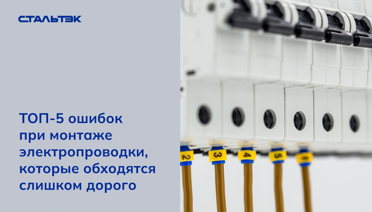 Электрика — это то, на чем экономить нельзя. Одна ошибка при монтаже может стоить не только дорогостоящего ремонта, но и безопасности дома или производства. Разберем 5 самых распространенных и опасных ошибок, которых стоит избегать. 1. Неправильный расчет сечения кабеля Почему это важно? Выбор кабеля с недостаточным сечением — одна из самых частых и опасных ошибок. Если сечение не соответствует нагрузке, кабель перегревается, что может привести к возгоранию. К чему это приводит: — Повышенный риск короткого замыкания; — Перегрев проводки и оплавление изоляции; — Необходимость полной замены электропроводки. Как избежать. Доверьте расчет нагрузки профессионалам. Специалисты «Стальтэк» точно определят необходимое сечение кабеля для вашего объекта, учитывая все особенности и требования безопасности. 2. Экономия на качестве материалов Почему это важно? Использование дешевых комплектующих и кабелей сомнительного качества — прямой путь к проблемам. Низкокачественные материалы быстро выход