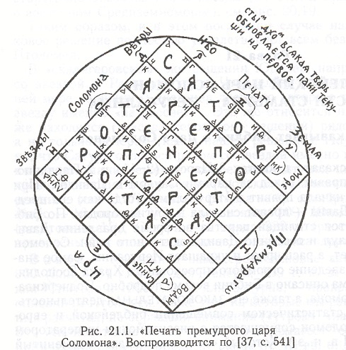Итак, Печать. Как видно из рисунка слова Сатор и Ротас обратные, то есть перевернуты друг относительно друга - конец одного слова является началом другого, одна противоположность вырастает из другой. В жизни последнее означает, что зло вырастает из добра, чёрное из белого, низ из верха, и наоборот.