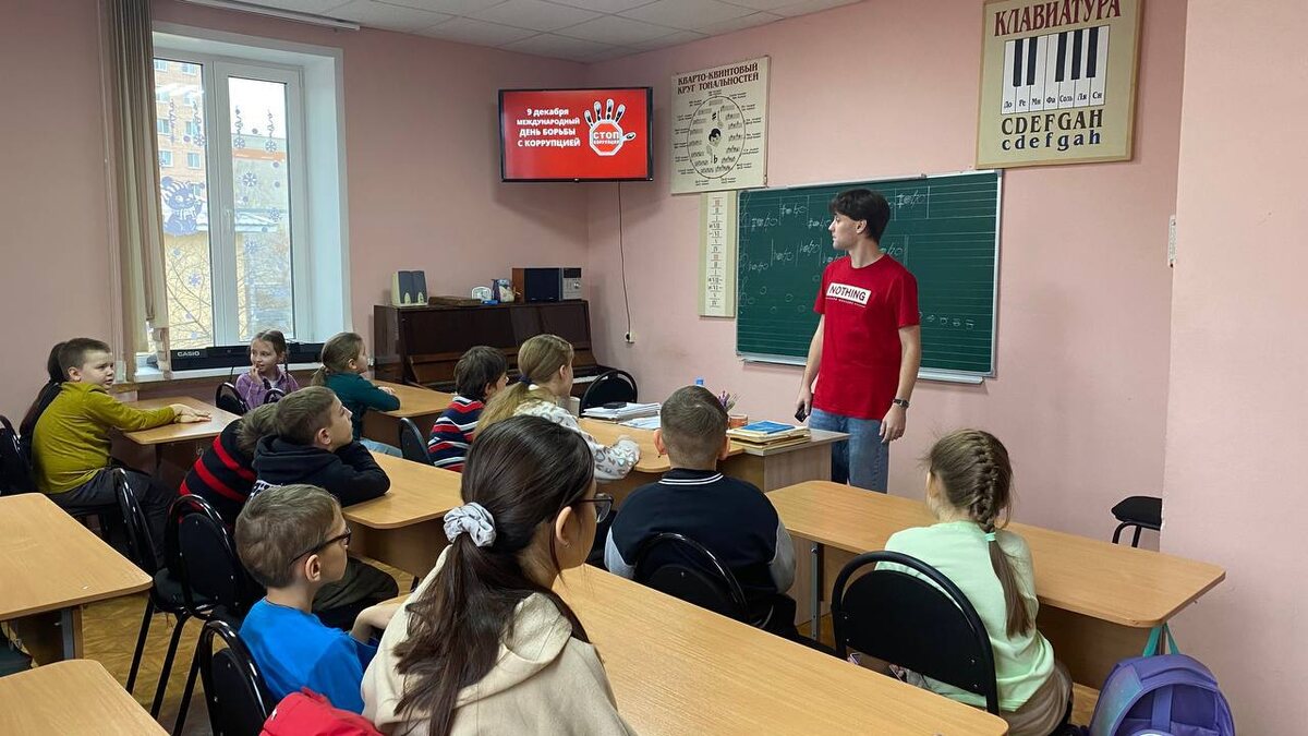 В преддверии Международного дня борьбы с коррупцией 🌍🚫⚖️, преподаватель Детской музыкальной школы им. Н.А. Котляра Демидов А. А. провел познавательный урок📚 для детей младших классов 🧒👧. На уроке в доступной для ребят форме были затронуты важные проблемы общества: почему коррупция – угроза стабильности общества🚨, как она влияет на экономику и социальную сферу, что может сделать каждый из нас для противодействия коррупции. Урок вызвал живой интерес у ребят, которые активно участвовали и задавали вопросы, формируя ответственное поколение для честного будущего.🌟🧑🎓 #ДМШимНАКотляра #КультураПенза #Культура58 #penz_kult