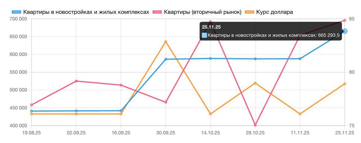Индекс недвижимости в Сочи обновился. Смотрим на цифры. ✔️ Индекс новостроек: 665 293,9 ₽/м² (это + 224 441 ₽/м2 за квартал) ✔️ Индекс вторичного рынка: 346 881 ₽/м2 (+ 6 331 ₽/м2) С начала ноября рост составил +2.1%. Это не сезонная рябь. Это тренд. Для большинства — это просто новость. Для инвестора — сигнал к действию. Что вижу, работая с активами каждый день: Ликвидность концентрируется. Деньги уходят не «во всю недвижимость», а в конкретные объекты и локации. Рост среднего чека - стало следствием двух важных факторов: ✔️Застройщики перестали истерить и (почти) вернули докризисные цены. Здесь окно для инвесторов за наличку уже закрыто. ✔️В рынок вышло несколько премиальных проектов с высокой ценой за м2. + сменилась механика покупки. Сейчас нельзя просто «покупать квартиру». Нужно покупать правильный объект, с интересной современной концепцией, в правильном месте, с чётким exit plan. Следующий скачок будет после Нового года, на фоне инфляционных ожиданий и курсовой дина