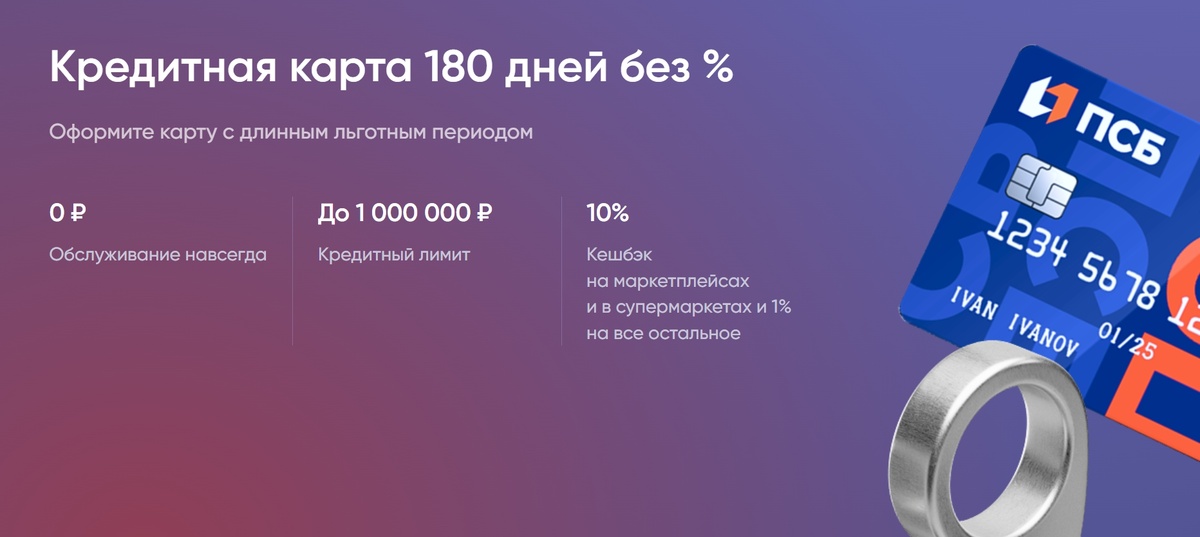Кредитная карта «180 дней без %» от ПСБ — что это такое