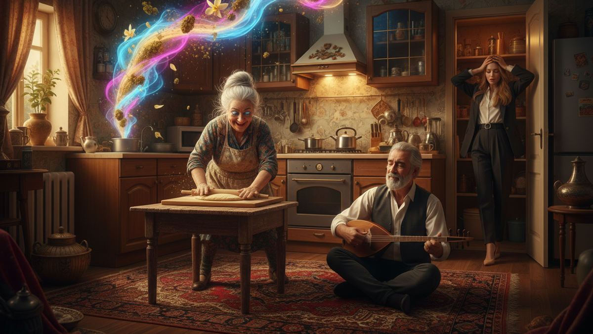 – А патамушта, дарагой! – однозначно ответила Бабушка, многозначительно повела бровью и продолжила замешивать пахлаву, периодически подергивая бедрами в такт кеманчи (муз.инструмент, как вы понимаете), на которой тихонькой играл Марк Василич, сидя на домотканом ковре в самом центре кухни.