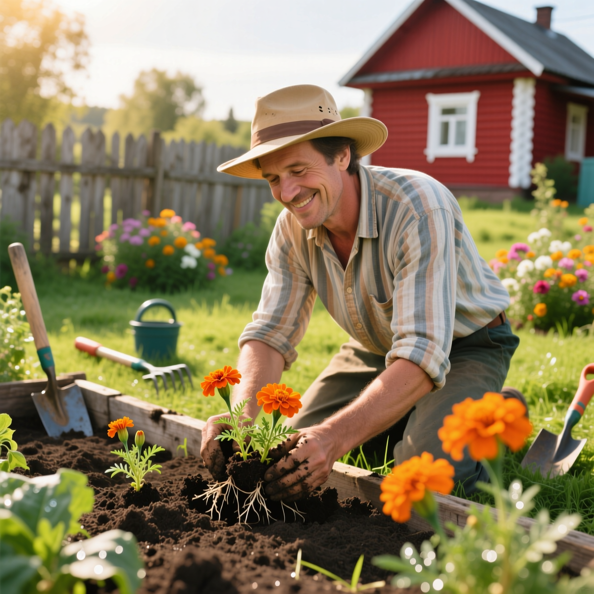 Привет, дачники! Представьте: вы выходите на грядки, а там ни тли, ни колорадского жука, ни медведки — чистота и урожай на зависть всем. А секрет? Простые бархатцы, посаженные по краю. Я так делаю уже 10 сезонов, и тля мой огород просто обходит стороной. Соседи с химией воюют, а у меня природная защита — яркие кустики цветут, вредители бегут, а грядки сияют. Расскажу, как это работает, и вы точно повторите. Это не миф, а проверенная тактика! Началось все с лени: устал травить тлю на капусте и томатах. Посадил бархатцы по периметру — и о чудо! Через неделю вредителей как корова языком слизала. Теперь это правило: бархатцы везде — у огурцов, перцев, клубники. Грядки не только защищены, но и выглядят как картинка. Поехали разбираться, почему это гениально! Почему бархатцы — природный спецназ против тли? Мой опыт Запах бархатцев — это их супероружие. Фитонциды и тиофены в корнях и листьях отпугивают тлю, нематод, белокрылку. Тля не любит аромат тагетеса, пугается и улетает. Я сажаю и