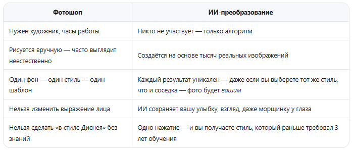 Как ИИ превращает фото вашего ребёнка в сказку — и почему это не фотошоп (и никогда не будет) Вы когда-нибудь смотрели на старое фото своего ребёнка и думали: «А если бы он был принцем? Или феей? Или супергероем — с плащом, сверкающим огнём и волшебным фоном?» Мы все мечтали об этом — но раньше это требовало часов работы в Photoshop, навыков художника, десятков слоёв и... катастрофической неестественности. Даже если вы найдёте лучшего дизайнера, результат редко бывает реалистичным. Глаза — не те. Тени — не там. Волосы — как из пластилина. А что, если бы всё это происходило за 15 секунд? Без усилий. Без дизайнеров. Без ошибок? Сегодня это не фантастика — это реальность. И она работает на основе нейросетей, которые уже не просто «рисуют» — они понимают. 🔬 Как это работает? Пошагово — как в научном фильме, но для вашего ребёнка Вы загружаете фото — обычное, с телефона, даже неидеальное. Ребёнок смотрит в камеру, улыбается, стоит на фоне квартиры или детской площадки. Ничего особенного —