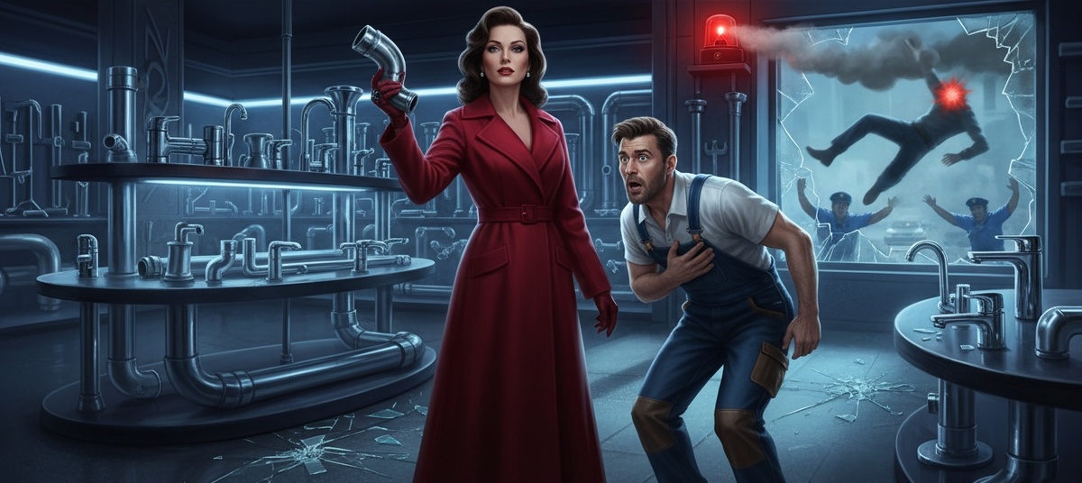 И в момент, когда бандит инстинктивно подбежал к оконному проему, чтобы крикнуть как он их всех ненавидит, волки позорные и прочие бандитские слова, Генриетта Иосифовна Штангенциркуль, отчаявшаяся дождаться своего героя дама, решила все взять в свои руки, в которых до сих пор находилось красивое самое что ни на есть сантехническое колено. А еще через секунду это колено опустилось на затылок бандита, который в свою очередь, крякнув, вылетел в окно прямехонько в руки старшего оперуполномоченного по особо важным делам.