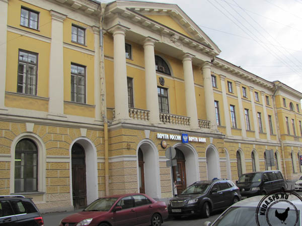 Здание Почтамта было построено в 80-е годы XVIII века по проекту архитектора Н.А. Львова в классическом классицизм. Но здание, где Почтамт находится сегодня, было вспомогательным и называлось «Почтовый стан». Дело в том, что в XVIII веке почта занималась не только и не столько пересылкой корреспонденции, сколько перевозкой людей. Здесь же располагались конюшни, каретные, ремонтные мастерские... В здание Главпочтамта уже много лет простые люди попасть не могут, а о его судьбе ходят противоречивые слухи. Даже в официальных новостях то объявляют о его продаже, то пишут, что все отменилось. Но у нас есть фотографии - как это было! Мы любили сюда заходить просто погреться и вообразить себя в начале XX века. Внутреннее помещение в нынешнем его виде появилось в первые годы уже ХХ века. Большой почтовый двор был перекрыт прозрачным куполом, помещения разобраны, и появился просторный операционный зал. Именно отсюда начинают отсчитывать расстояния, именно здесь установлен километровый столб