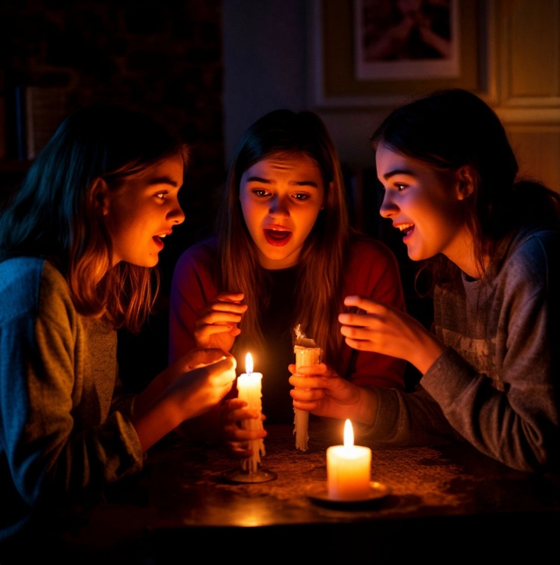 Три девицы под окном… Чипсы ели и страшные истории рассказывали. Ведь чем еще заняться, когда в их общежитии, как и во всем районе, отключили электричество. Вот и сидят при свечах. Сначала всем однокурсницам косточки перемыли, но свежие сплетни как-то быстро закончились. А тут сама атмосфера располагает – за окном вторые сутки валит снег крупными хлопьями, темнота, треск свечей и тишина.