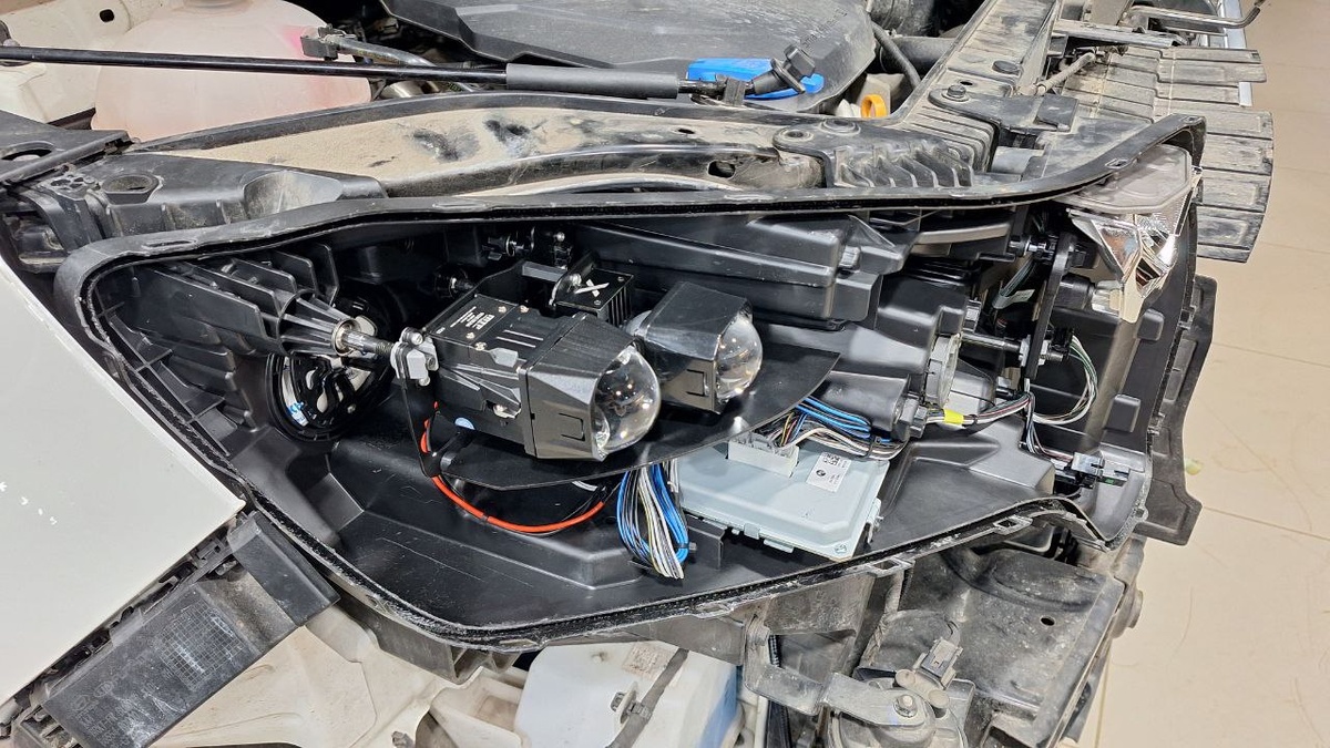 KIA Carnival 4 на установке двух светодиодных модулей в фару головного света.