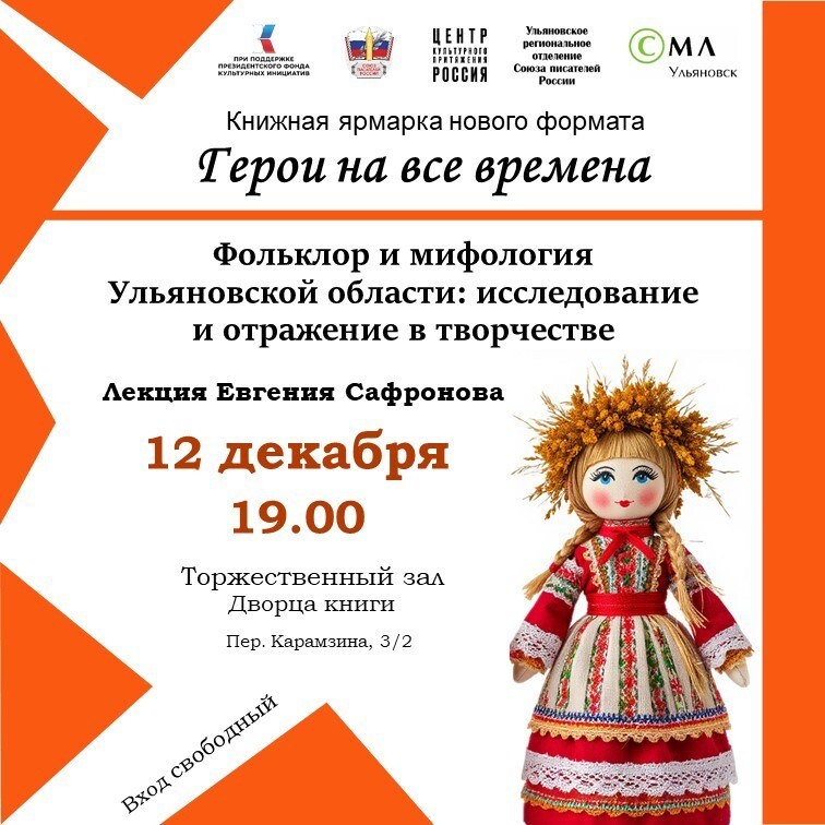 📌12 декабря 2025 года во Дворце книги пройдёт лекция, посвящённая исследованиям «необычного» фольклора Ульяновской области. Кандидат филологических наук и писатель Евгений Сафронов расскажет о семейных преданиях и быличках - устных историях о встречах со сверхъестественным. 📖 - Встреча состоится в рамках Всероссийской книжной ярмарки нового формата «Герои на все времена» - поэтому в своей лекции я сосредоточусь на фольклорных истоках собственного творчества. Поделюсь некоторыми лайфхаками - о том, как записывать историю собственного рода и как «вплести» мифологические и традиционные представления в сюжеты художественных произведений, - пояснил писатель. 👍Ждём ульяновцев и гостей города 12-го декабря в 19-00 в Ульяновской областной научной библиотеке (пер. Карамзина, д.3/2). Больше о событиях Дворца книги можно узнать на портале Культура.РФ Вход свободный!