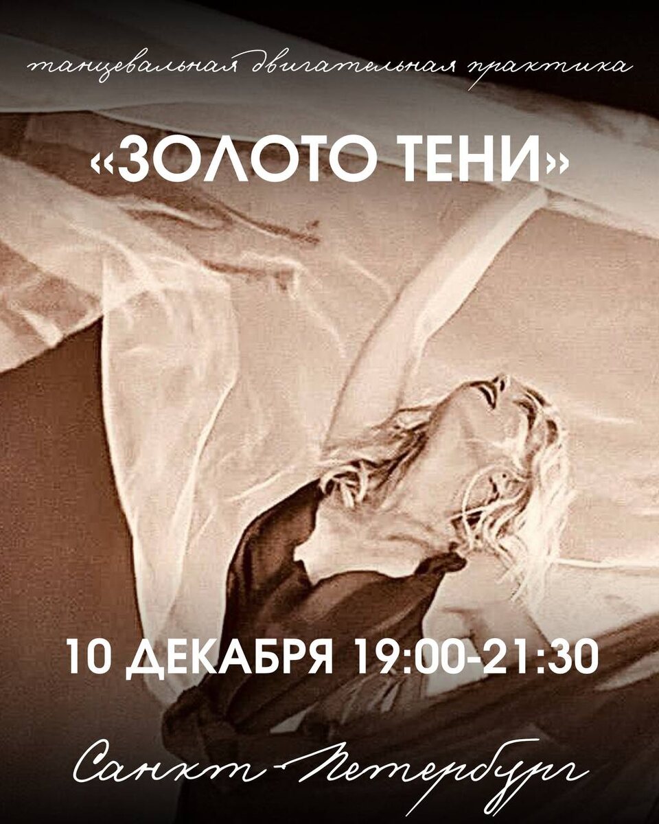 ⚡️Юнг говорил: «Пока ты не осознаешь свою Тень, она ведет твою жизнь, а ты называешь это судьбой». Мы вытесняем не только неприятное, стыдное и страшное. Мы вытесняем и наше золотое, сильное и при этом уязвимое. ❓Почему же сила, талант и яркость становятся уязвимыми? ➡️Мы, наша семейная и родовая системы исключают то, что невыносимо больно, то, что нельзя было переработать. Самые мощные наши части личности оказываются выселенными из тела и психики. Если вы хотите проверить, что конкретно отщепляется и вернуть себе силу, приходите на танцевальную- двигательную практику «Золото тени»: ◾️10 декабря ◾️19:00-21:30 ◾️Ведущая — Ольга Сергеева ◾️Очно в ИПиПТ Санкт-Петербург (ул. Большая Разночинная, 7) Стоимость: ▪️1600₽ — по предоплате ▪️1800₽ — при оплате в день мероприятия ✨ Умение профессионально танцевать не требуется — приходите как исследователь. Одежда должна быть удобной и не сковывавшей движения, можно взять повязку на глаза. ✈️Записаться на практику и задать вопросы можно