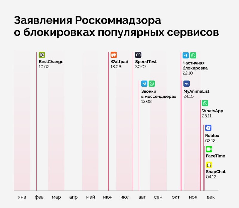 Роскомнадзор бьёт собственные рекорды по блокировкам Только за две последние недели под раздачу попали сразу четыре сервиса: Roblox, Snapchat, FaceTime и WhatsApp. А за предыдущие 11 месяцев в бан улетели ещё шесть: BestChange, Wattpad, SpeedTest, MyAnimeList и отдельные функции в WhatsApp и Telegram. Чувствуется, что к Новому году решили закрыть все дырки в отчёте 😅 Подробнее: https://hard-tm.su/threads/132665/ 🕹HARD-TM — Подписаться
