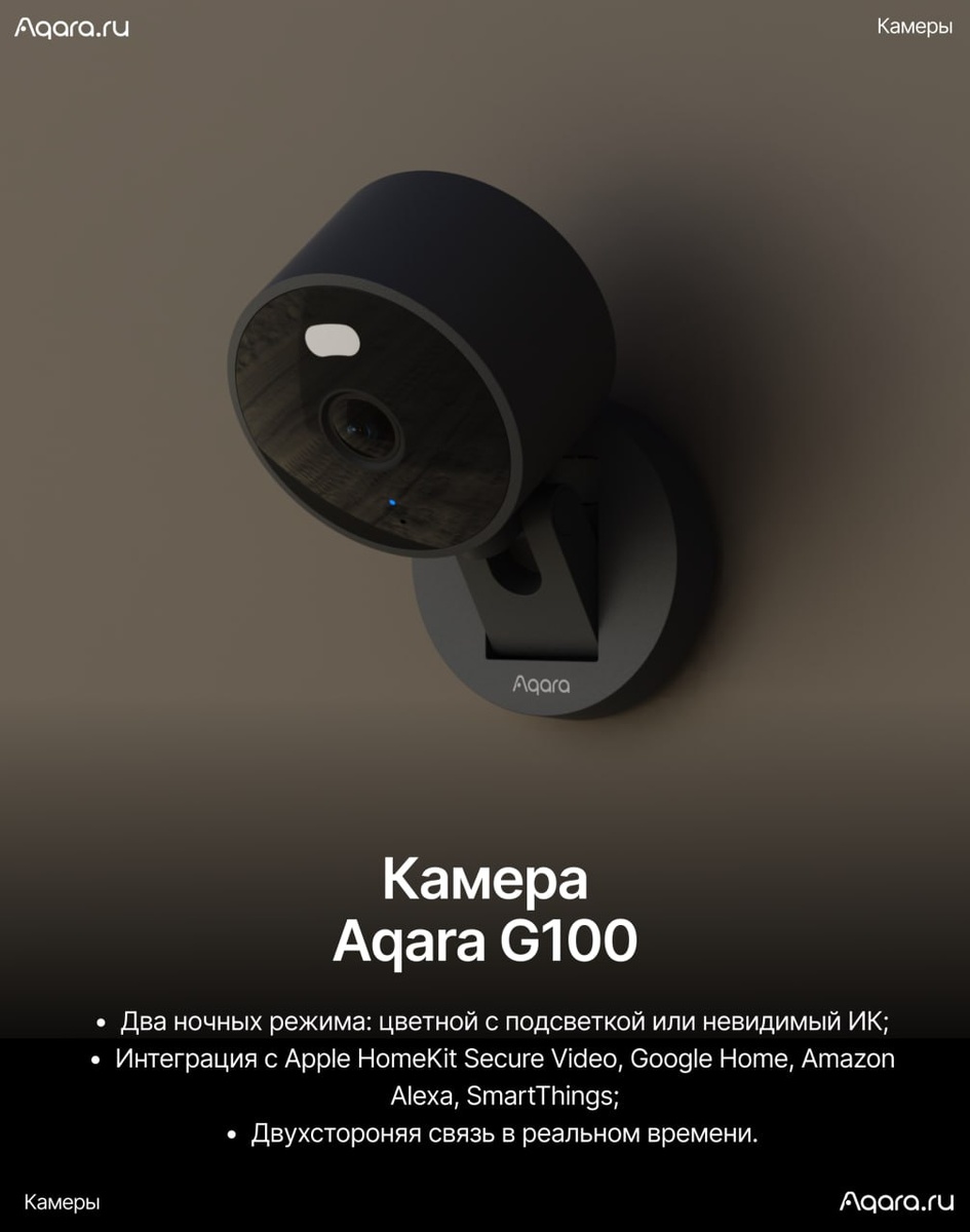 Как выбрать умную камеру Aqara? Следить за охраной дома, безопасностью детей или близких: со всеми этими задачами помогут умные камеры Aqara. Если камера должна фиксировать конкретную зону, выбирайте стационарную. Тем, кто хочет расширять умный дом, имеет смысл брать камеру-хаб — она станет центром умного дома и позволит объединять устройства. Какой вариант выбрать? 🔸 Умная камера Aqara E1: универсальная Wi-Fi камера для помещений: 2K-видео, возможность наклона и поворота, угол обзора 360°, ночное видение, детекция движения. 🔸 Камера хаб Aqara G3: камера + Zigbee-хаб может стать центром системы умного дома и камерой одновременно. В ней широкоугольный объектив 110°, возможность наклона и поддержки автоматического поворота за вошедшим человеком и домашними животными, а еще она распознает жесты и лица. 🔸 Камера хаб Aqara G5 Pro: более продвинутая камера-хаб: широкий угол обзора и инновационная ночная съемка, которая захватывает в 4 раза больше света и делает изображение ярче и дет