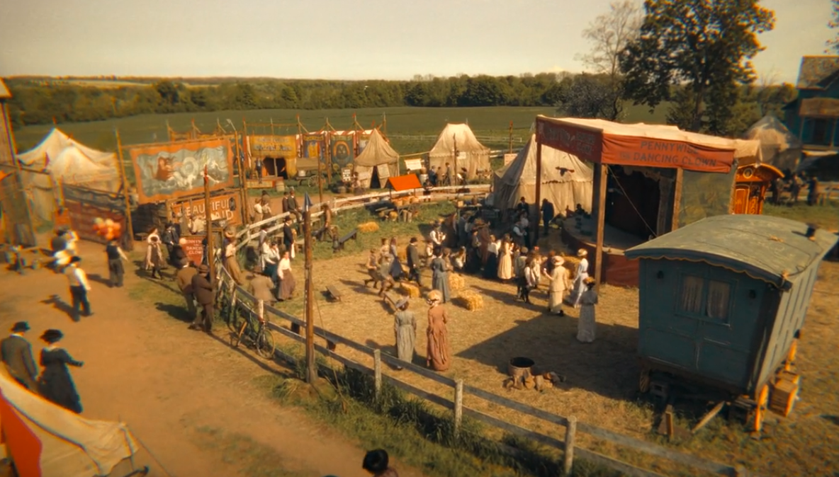 Действие открывается на карнавале, где клоун Пеннивайз (в исполнении Боба Грея) даёт представление. Номер не сводится к простому развлечению: в него вплетена сцена похорон, через которую Боб делится с дочерью воспоминаниями о покойной жене. Это придаёт выступлению особую глубину — перед нами не просто клоун, а человек, переживающий личную трагедию.