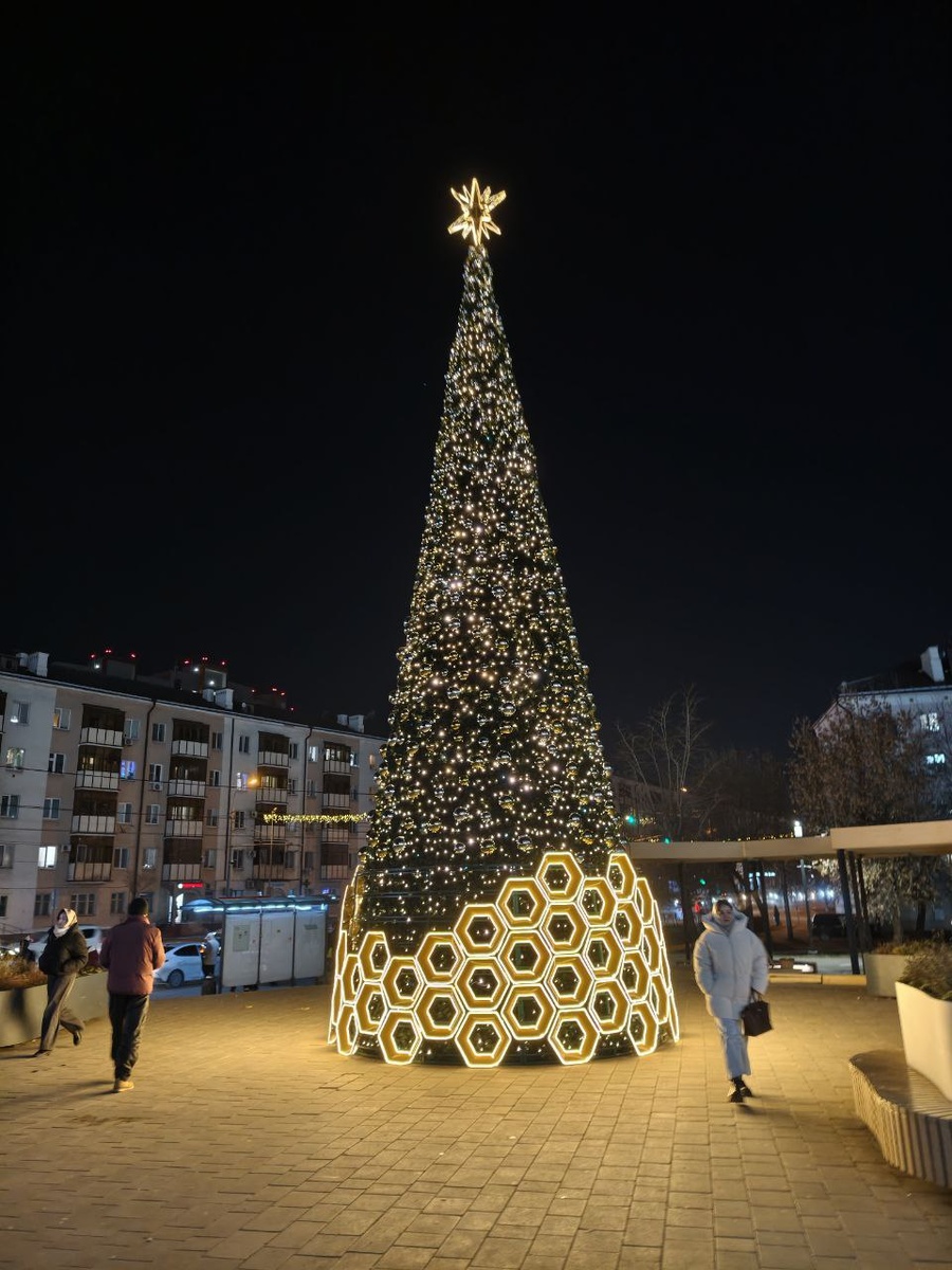 А такая ёлка расположилась у ТЦ КазанМолл, а этом году выглядит по-новому