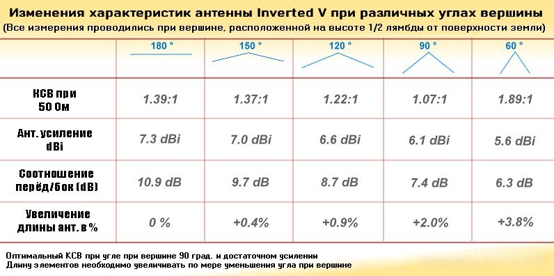 Характеристики и производительность антенны Inverted V 🔹 Основные характеристики антенны Inverted V более или менее соответствуют характеристикам типичного стандартного диполя. Поэтому не будем подробно останавливаться на объяснении этих характеристик и параметров, а сосредоточимся на уникальных и особых характеристиках этой антенны типа Inverted V. 🔹 Большинство различий в характеристиках возникает из-за наклонных элементов антенны Inverted V. Каково влияние наклона проволочных элементов? Рассмотрим это подробнее. 🔹 Все различия в характеристиках пропорциональны величине угла при вершине. Чем больше он отклоняется от 180°, как у стандартного диполя, тем больше отклонения в поведении. Прежде всего, существуют четыре характерных признака, которые изменяются при изменении угла при вершине. Читать далее >>
