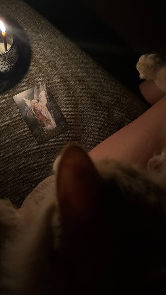 Села подышать… Поблагодарить и попросила показать ответ на вопрос … Пришел кот, в наглую лег на меня , ну и карты рядом оказались … Отдаю и вам❤️ Что чувствуете глядя на нее? Чтобы сказали себе?