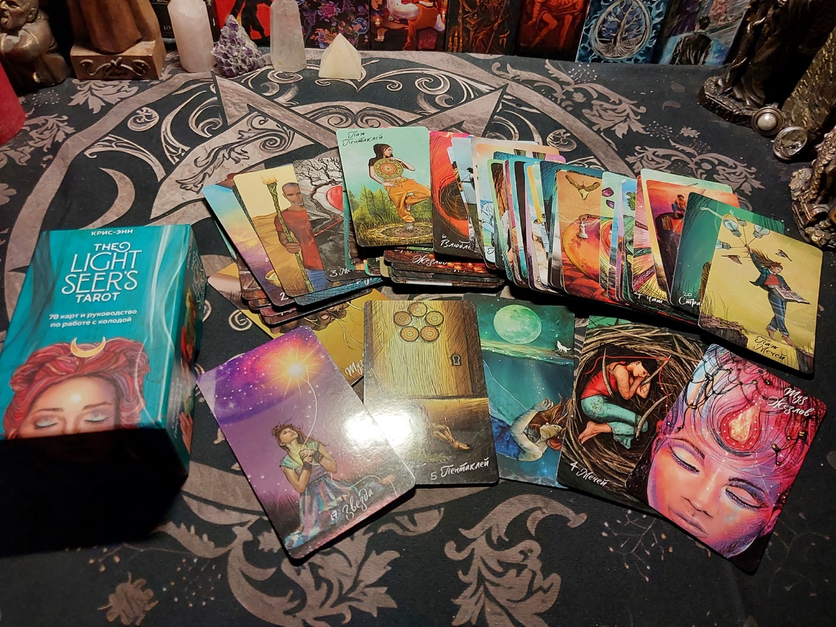 Всем добрый день, мои дорогие. У нас с вами сегодня обзор очередной колоды моей помощницы Таро Светлого Провидца. Хочу немножко рассказать вам об этой колоде, возможно, кого-то она заинтересует, может быть, у кого-то она уже есть. Эта информация пригодится для тех, кто интересуется Таро, кто интересуется маническими инструментами, кто изучает карты Таро и хочет расширить свой кругозор, работая не только с классикой Райдера-Уэйта. Если мы с вами говорим о классике, то классическая система — это та система, которая принята, в принципе, в нашем сегодняшнем мире. Как говорится, это база. Но мы сегодня поговорим с вами не только о Таро Светлого Провидца, но и об авторских колодах вообще, в принципе. Итак, Таро Светлого Провидца. Колода с очень светлой энергетикой, но колода глубинная. И если внимательно смотреть на карту, можно увидеть не только её классическое значение, но также и глубокий, глубинный смысл, что полностью раскрывает картину целиком. В раскладе помогает окунуться в подсозн