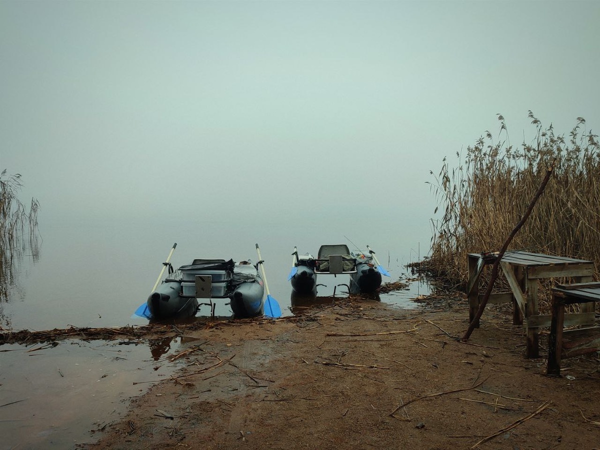 Грустные катамараны смотрят в туман. Зима на дворе, а мы ездим на рыбалку. Жаль, рыба не ловится, один выход и одна поклевка на двоих за день, но погуляли хорошо. Наверное, погода очень хорошая была, не дождя, не ветра. Щука такое не любит. У меня, правда, прямо по середине дня сломались мои электрические носки и я немного замёрз. Как без них раньше жил, не знаю. С носками хорошо.