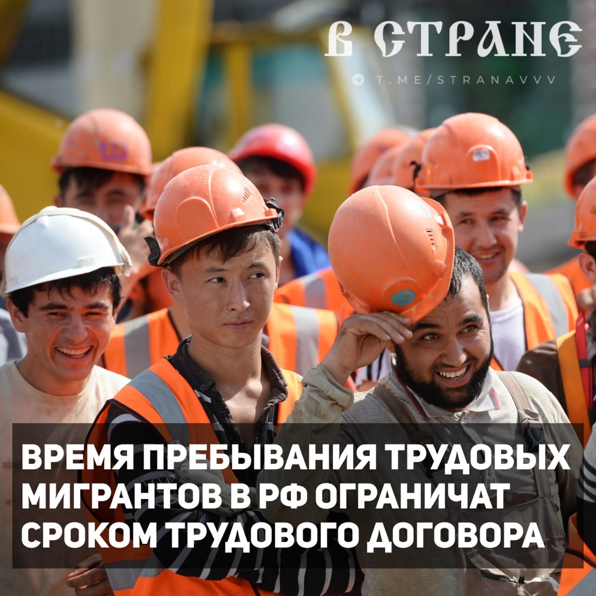 Время пребывания трудовых мигрантов в РФ ограничат сроком трудового договора. Такой законопроект будет внесен в Госдуму 13 декабря лидером партии «Справедливая Россия» Сергеем Мироновым. Одобряем? 👍/👎 ✅ «В Стране» в MAX