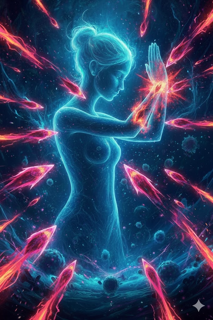 Часть 6. Внешние воздействия: как негативные программы запускают внутренний сбой Есть ситуации, когда процессы саморазрушения у человека начинают развиваться после контакта с сильным внешним воздействием. В народе это называют порчей, наведённой программой, пробоем. Начало здесь: В энергополе такие вмешательства ощущаются очень чётко – как нарушение естественного потока, как искажённый зов, который иммунитет начинает воспринимать как сигнал тревоги. Но важно понимать: внешнее воздействие никогда не создаёт проблему с нуля. Оно попадает в ту часть человека, которая уже была ослаблена внутренним конфликтом, старыми обидами, непрожитым гневом, горем, тоской или программой самоуничтожения. Внешняя программа работает по принципу «зацепки». Она усиливает то, что внутри уже было напряжено. Она нажимает на тот внутренний узел, который человек долго избегал. И тогда иммунитет начинает действовать чрезмерно резко, будто отражая атаку, которой на самом деле нет. Это может проявляться: – как