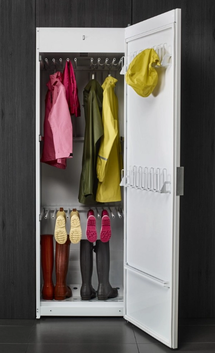 Сушильные шкафы — редкий, но крайне удобный тип техники. В отличие от сушильных машин, которые вращают бельё в барабане, шкафы сушат вещи в статичном положении: на плечиках, полках или выдвижных перекладинах. Это особенно важно для деликатных тканей, изделий с фурнитурой, верхней одежды, обуви и спортивной экипировки.