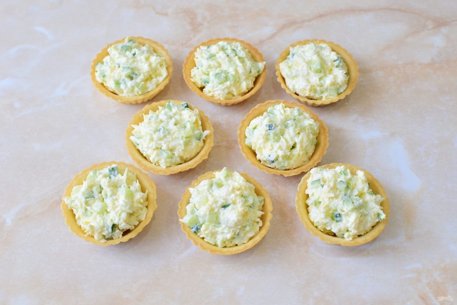 Я обожаю различные новогодние закуски. Особенно тарталетки, внутри может быть разная начинка, икра креветки,рыба,салаты и просто закуски. Их удобно есть и красиво аккуратно можно поставить на стол. Тарталетки с черри, томатами и огурцами. На 8 человек понадобится : 8 шт. Тарталеток; Сыр Фета -70 гр; Укроп -10 г; Огурец -1 шт.; Черри помидоры -50 гр; Для украшения ветка петрушки; Для начала моем укроп и мелко режем его, вилкой давим фету,и смешиваем всё. Режем наш томат черри на четыре кусочка, огурцы полукругом. В тарталетки мажем нашу смесь из фети и укропа, сверху кусочек черри и огурца, сверху лист петрушки. Также можно добавить ветчину или рыбу,как добавку в начинку, для вкуса и сытности. Тарталетки с ветчиной, сыром, и помидорами. Вкусный и классический вариант сочетания сыра и ветчины,сытный, лучше подавать горячим. Вариант на 8 персон: Тарталетки -8 шт.; Ветчина -50 гр; Сыр-75 гр; Черри -8 шт.; Яйцо-1 шт.; Сметана- 2 1/2 ст.л.; Сухие травы-1 ч.л.; Возьмите любой любим
