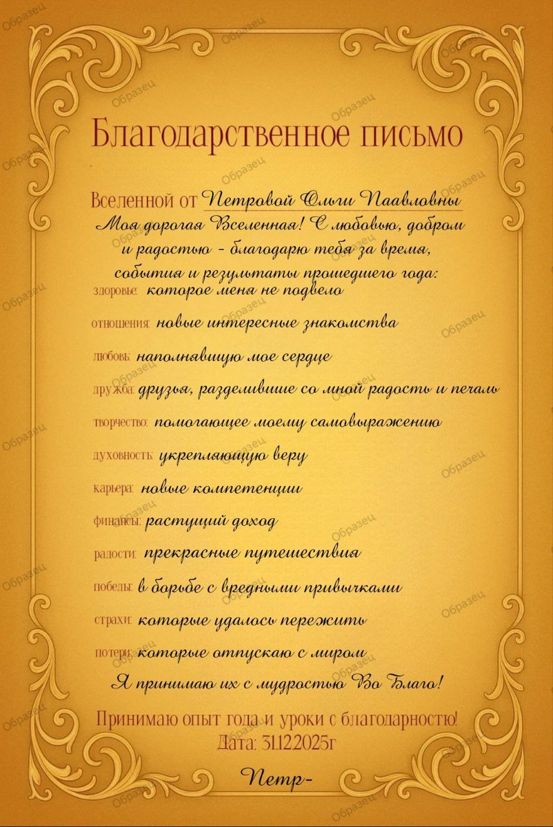 🔻I. ЧАСТЬ | "Благодарственное письмо Вселенной и году"🔻
