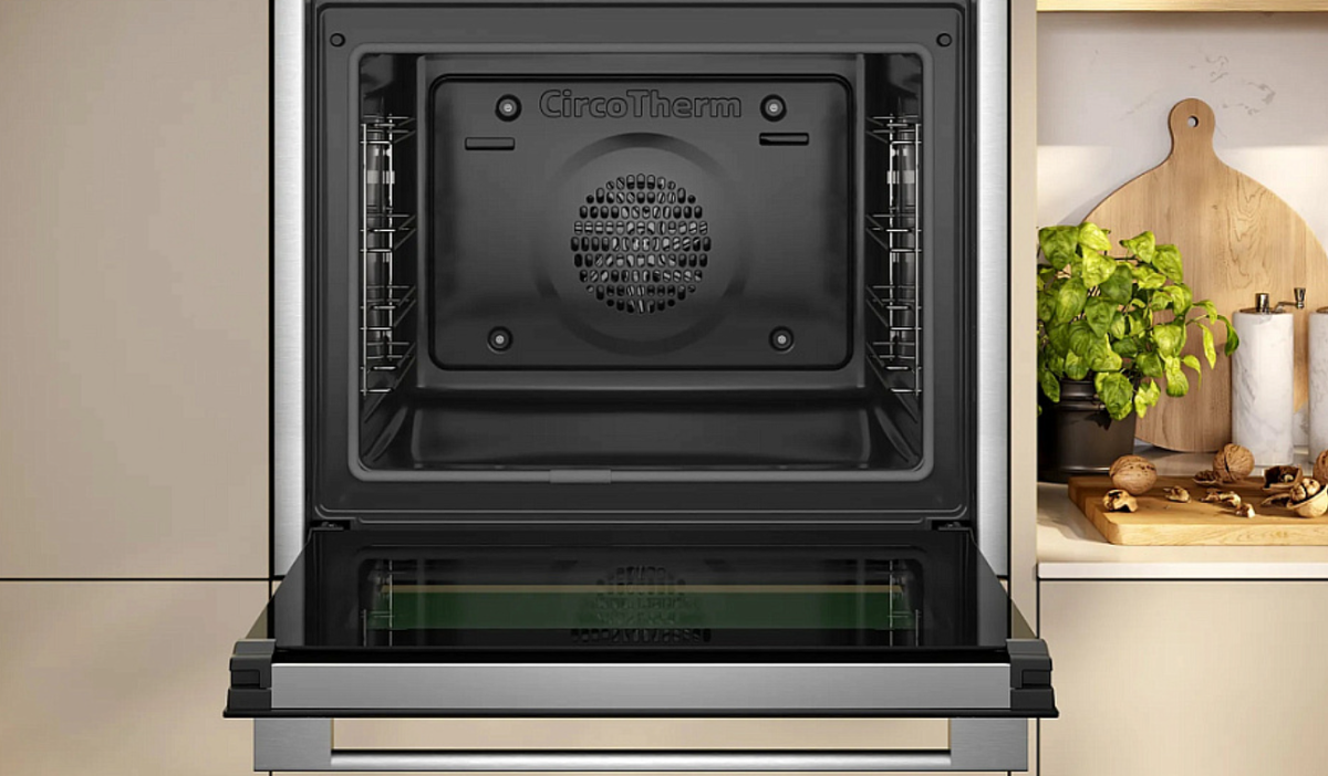 Духовые шкафы Neff известны тем, что совмещают классический электрический нагрев с рядом инженерных решений, которые делают приготовление более точным и предсказуемым. В линейку входят как стандартные модели, так и приборы с расширенными режимами: конвекцией, паром, тонкой регулировкой температуры и продуманной вентиляцией. Техника ориентирована на тех, кто хочет получать одинаковый результат при повторении рецептов и использовать разные способы приготовления без сложных настроек. Конструкция камеры и нагревательные элементы Внутренние камеры духовых шкафов Neff выполнены из нержавеющей стали с гладкими стенками. Геометрия камер продумана таким образом, чтобы воздух распределялся равномерно, а тепло не накапливалось в отдельных зонах. Глубина позволяет размещать несколько уровней противней, сохраняя расстояние между ними. Основные нагревательные элементы расположены сверху и снизу, но ключевое отличие — использование конвекционного вентилятора, который распределяет горячий воздух по в