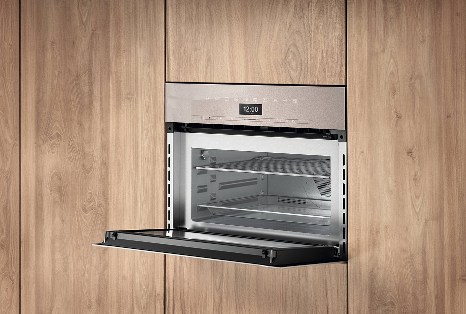 Miele использует встроенный паровой контур, который подаёт небольшие порции влаги в камеру. В отличие от классических паровых духовок, Moisture Plus работает по заданному графику: камера получает влагу в ключевые моменты приготовления, когда она действительно влияет на структуру блюда.