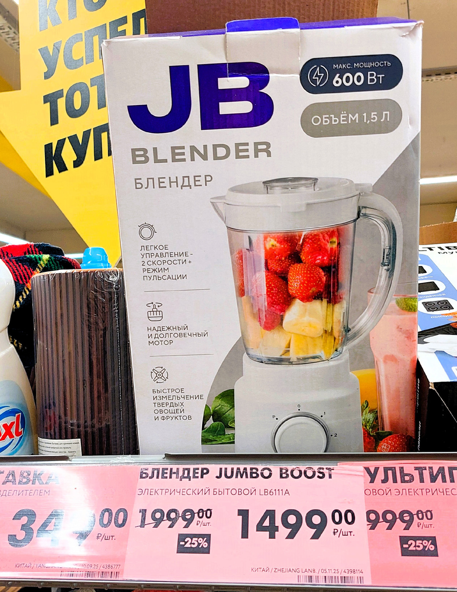Посмотрите, какая хорошая скидка в Чижике на Стационарный блендер мощностью 600 Вт, и теперь он стоит 1499 рублей вместо 1999