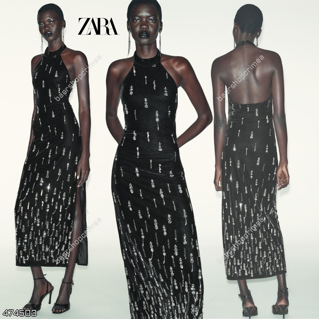 Платье бархатное c аппликациями из бисера и пайеток (женский раздел)